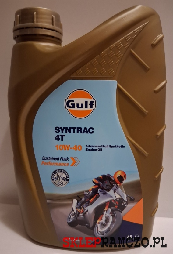 Gulf Syntrac 4T 10W-40 to syntetyczny olej do czterosuwowych silników benzynowych, opracowany specjalnie z myślą o spełnieniu specyficznych wymagań najnowszych chłodzonych powietrzem 4-suwowych silników motocyklowych wysokiej mocy. Olej Gulf Syntrac 4T 10W-40 jest mieszanką sporządzoną z olejów bazowych o jakości klasy „premium” oraz zaawansowanych technologicznie dodatków w celu przekroczenia najostrzejszych wymagań w zakresie smarowania współczesnych motocykli z silnikami czterosuwowymi. Gulf Syntrac 4T 10W-40 zapewnia doskonałe zabezpieczenie silnika, przekładni oraz sprzęgła mokrego stosowanych w motocyklach z silnikami czterosuwowymi oraz zapewnia najwyższy stopień niezawodności nawet w bardzo trudnych warunkach eksploatacji. Jest olejem nadającym się do pracy w szerokim zakresie temperatur otoczenia. Olej Gulf Syntrac 4T 10W-40 przekracza wymagania specyfikacji API SN and JASO MA2 oraz wymagania wiodących światowych producentów motocykli z silnikami czterosuwowymi.
